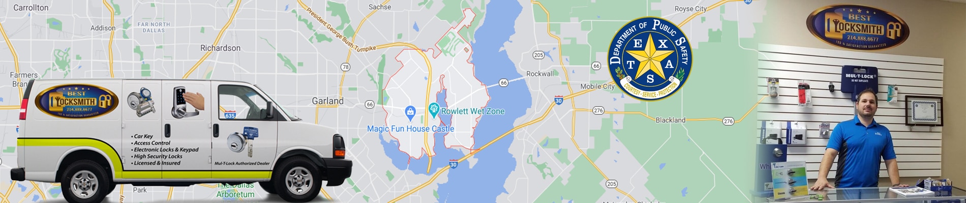 Looking for a professional locksmith near you in Rowlett? Our security experts offer the full range of residential, commercial, and car locksmith services. And they’re ready around the clock for your 24-hour emergency needs. Trained by industry specialists they’ll arrive right when we say they will in a fully-equipped van ready to tackle just about any problem — from duplicating laser-cut car keys to installing complete master key and access control systems. Best Locksmith is licensed with the Texas Department Of Public Safety and a member of ALOA Security Professionals Association, Inc.